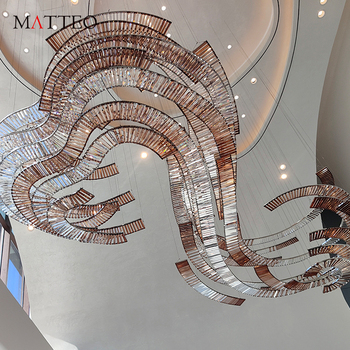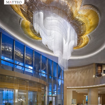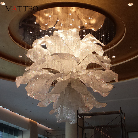 Nuevo diseño de cristal de lujo, sala de exposición comercial, Villa, techo alto, lámpara de araña LED personalizada, instalación colgante de techo