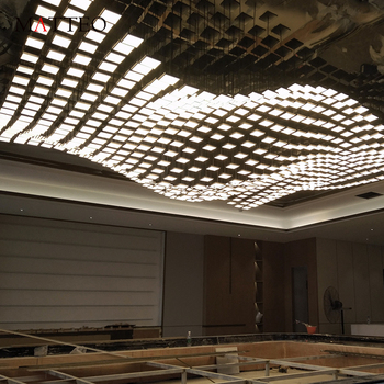 Lámpara de Techo Tipo Candelabro LED de Arte Moderno Decorativa, Personalizada, Grande, de Metal y Acrílico con Módulo Cuadrado para Lobby de Hotel